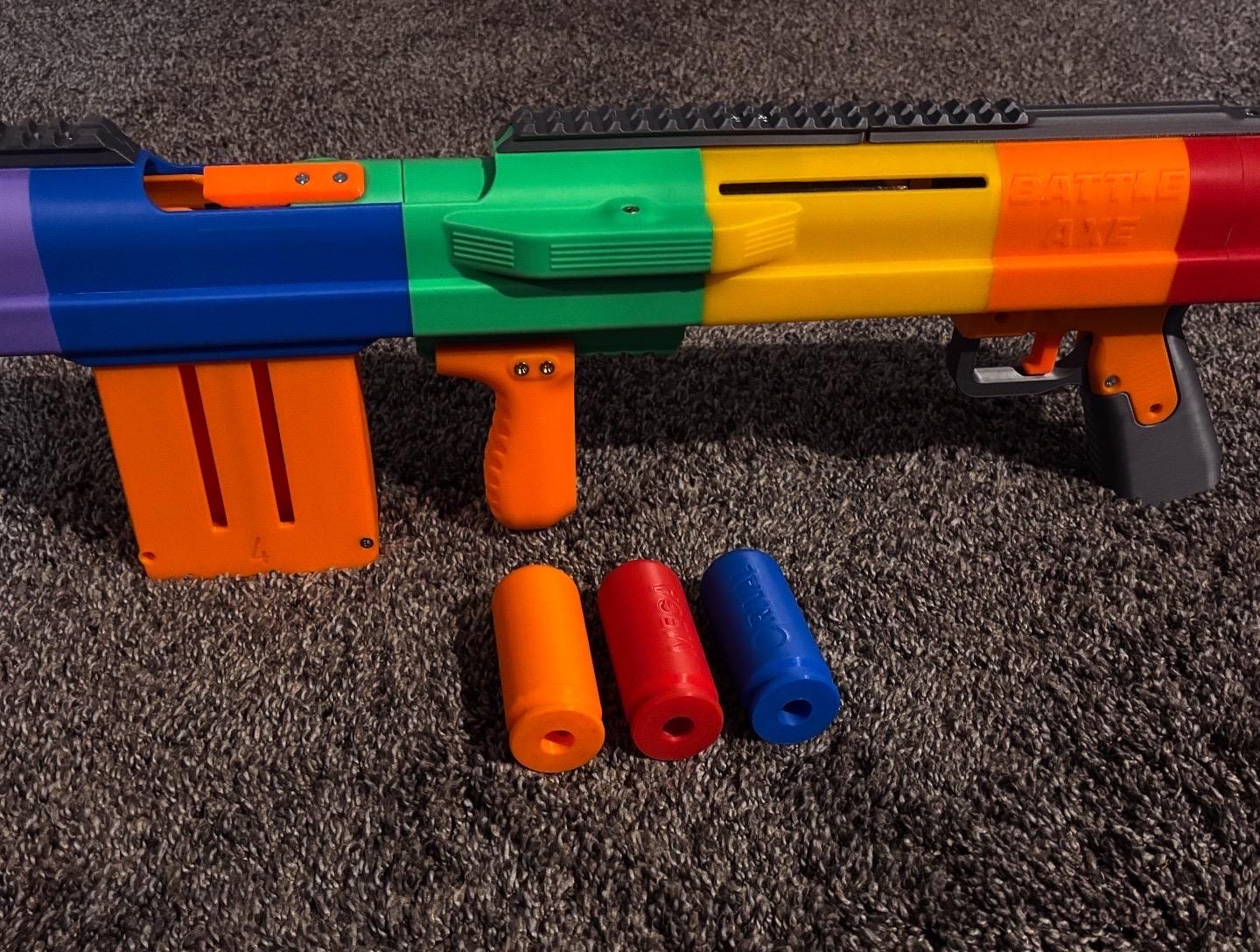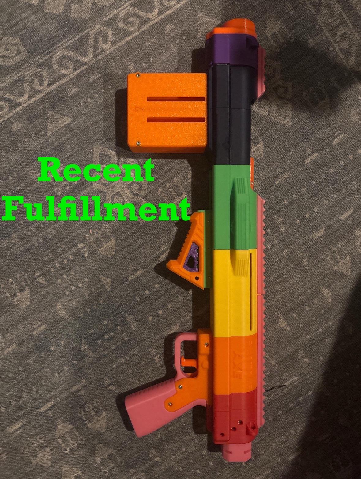 I aim to make the blaster YOU want to use, whether it be all pink* then I will make you that blaster, you will just need to message me in the instance the shop options are insufficient to your color needs (if it requires a different filament than I have available, additional cost is needed in order to give you the best experience).