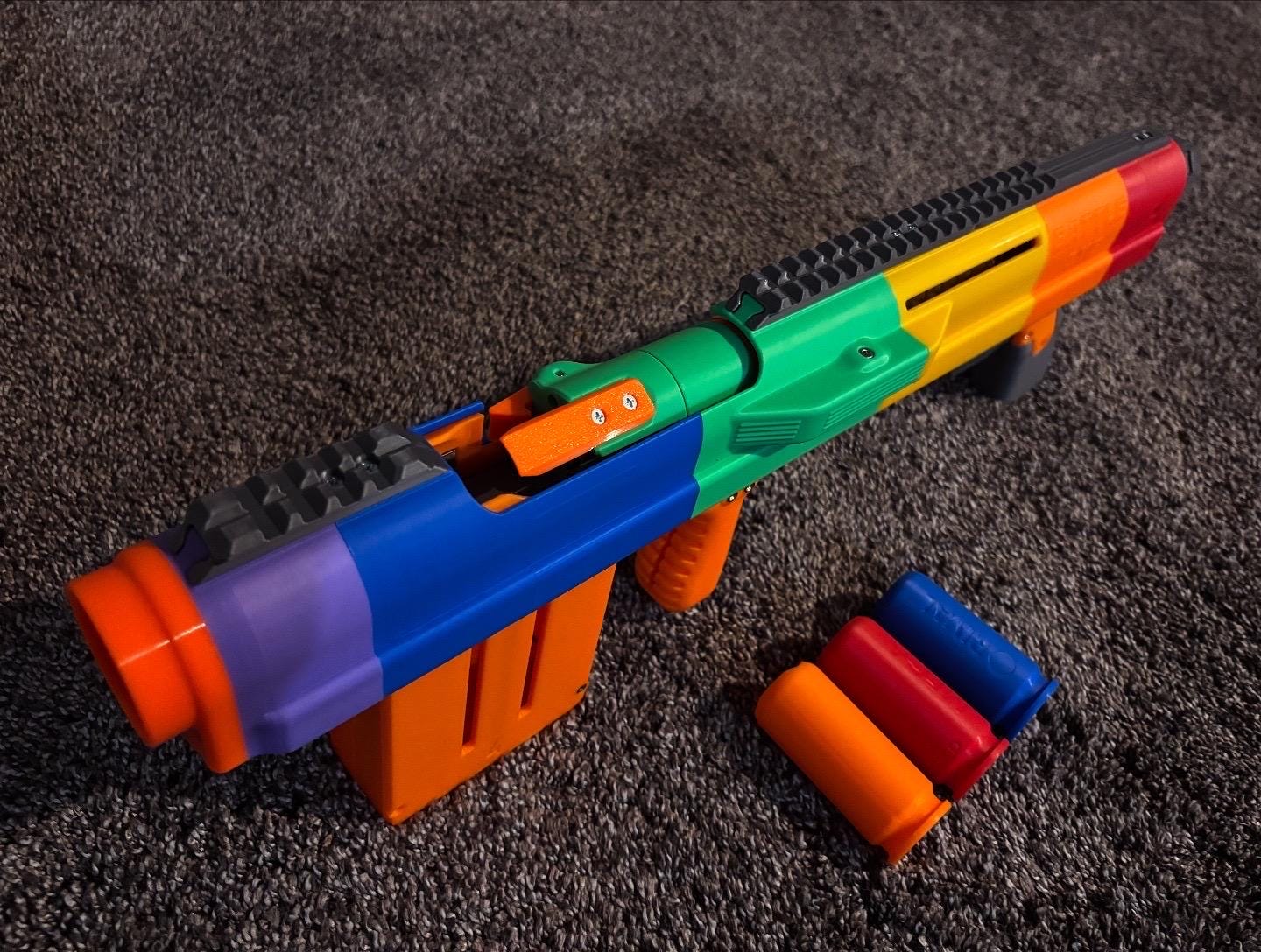 Battle Axe - Shell Ejecting Nerf Shotgun by Sillybutts (Printed Springer Nerf Blaster)
